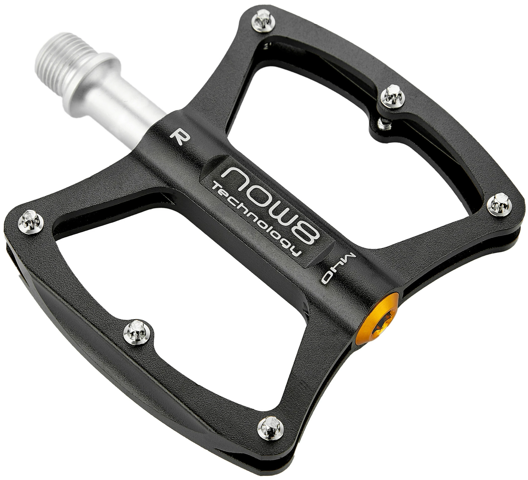 NOW8s neue M40 Plattformpedale ist, trotz ihrer CroMo Achse, mit nur 282 pro Paar sehr leicht. Die Pedale ist ausgestattet mit 6 Pins je Seite und besitzt eine Links/Rechts Markierung.