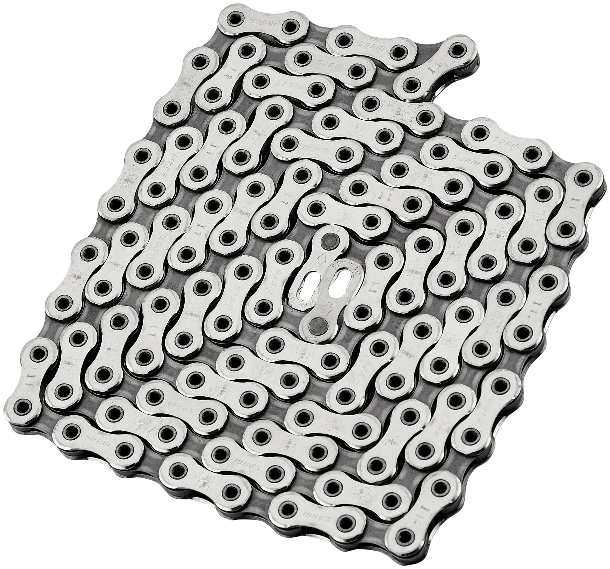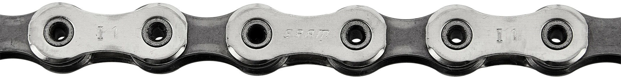 Bei der Kette SRAM PC-1170 kommen äußere Laschen mit stark ausgeformten Kanten zum Einsatz – so schaltet die Kette leichter und läuft leiser. Hartverchromte Niete tragen zum langen Leben der Kette bei